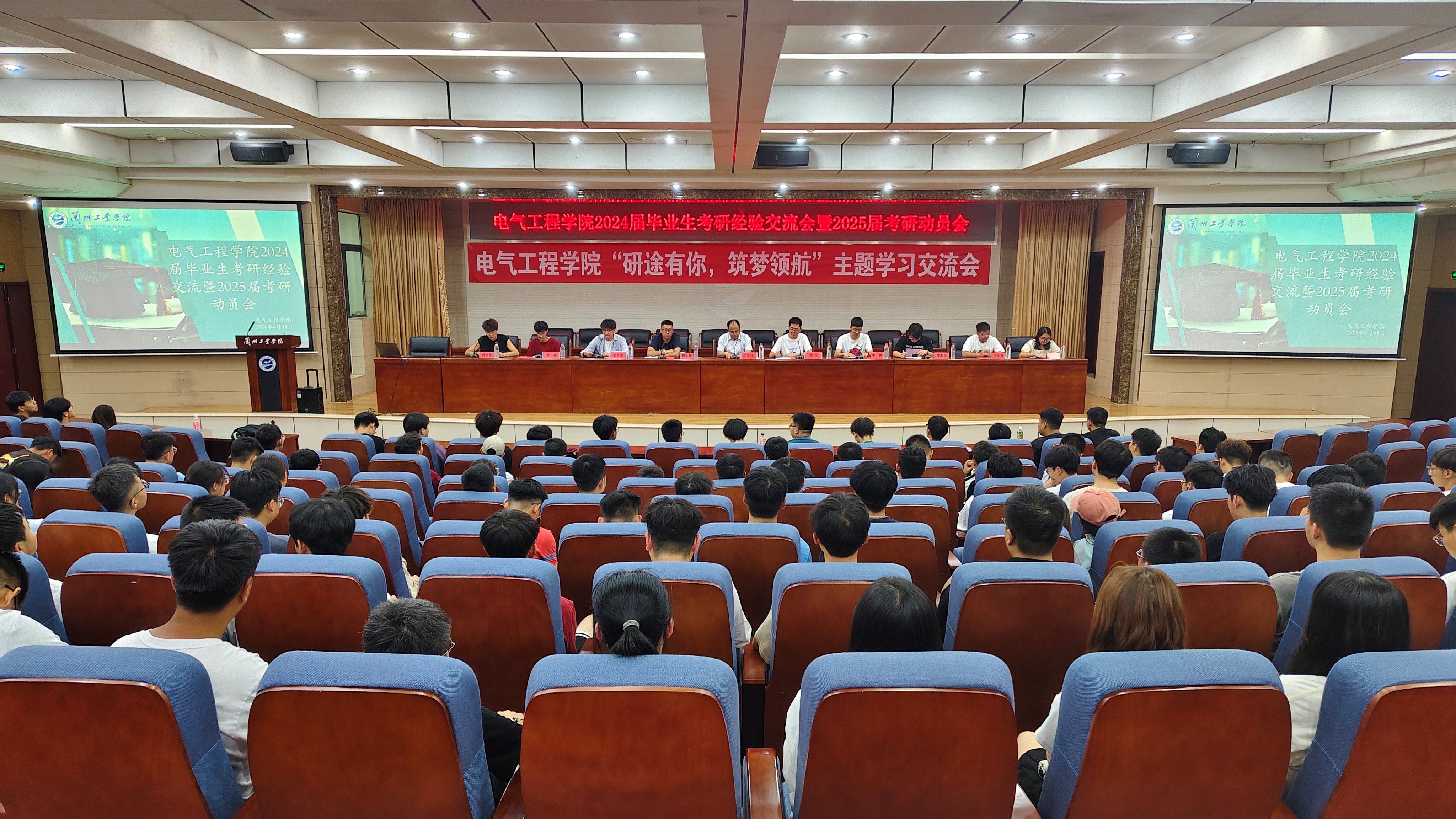 会上,原电气2023届毕业生、兰州理工大学在读研究生聂大程、邵圆圆,2024届成功考研学生刘建伟、金海、孟存宁、贾永乐、李尧、王文春6位同学,结合自己的考研经历,分享了备考方法、应试技巧以及心态调整等方面的经验,为同学们提供了宝贵的建议和指导。同时,他们也阐述了考研对于个人成长和未来发展的重要性,鼓励同学们要敢于挑战自我,追求卓越。