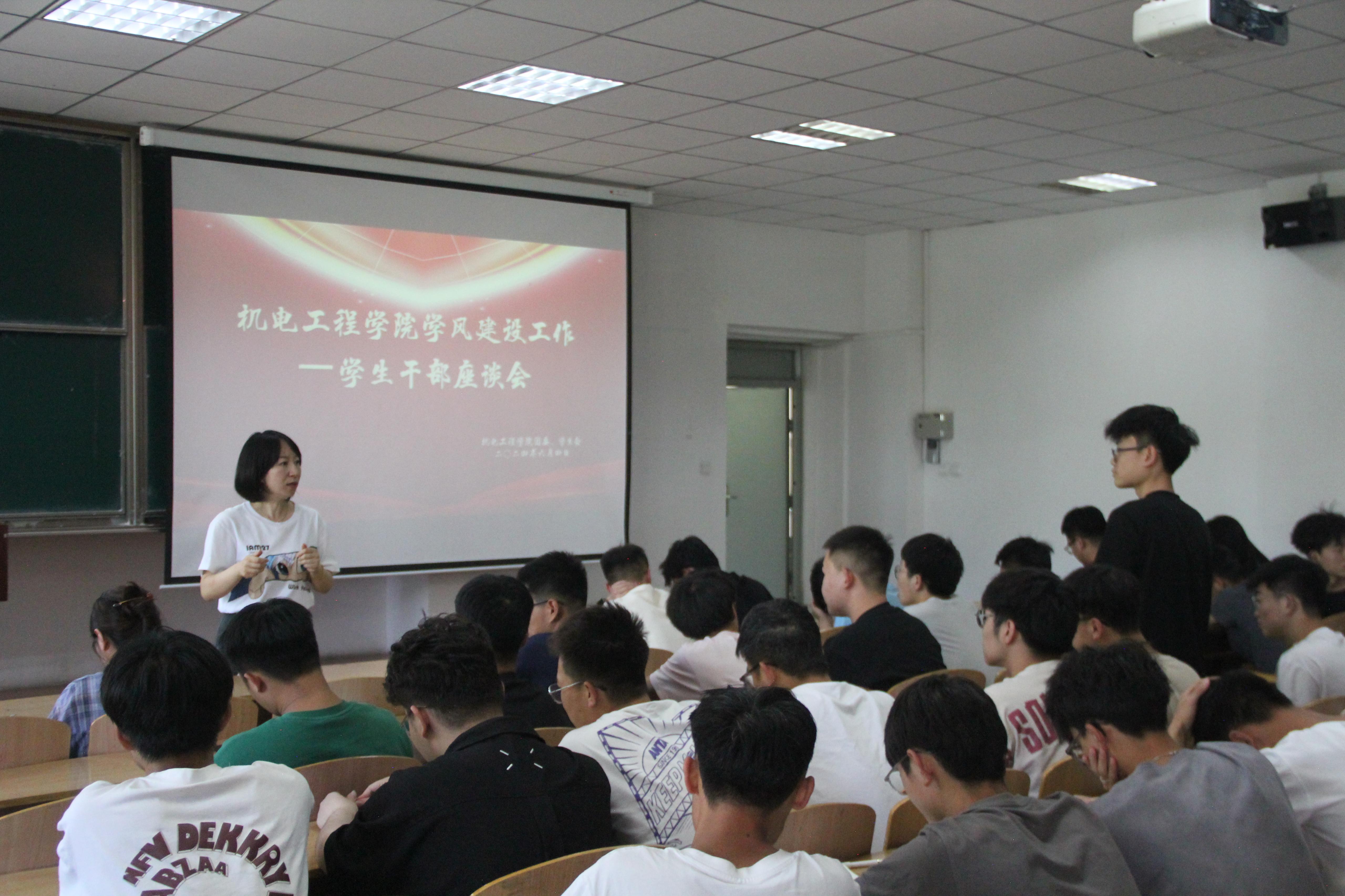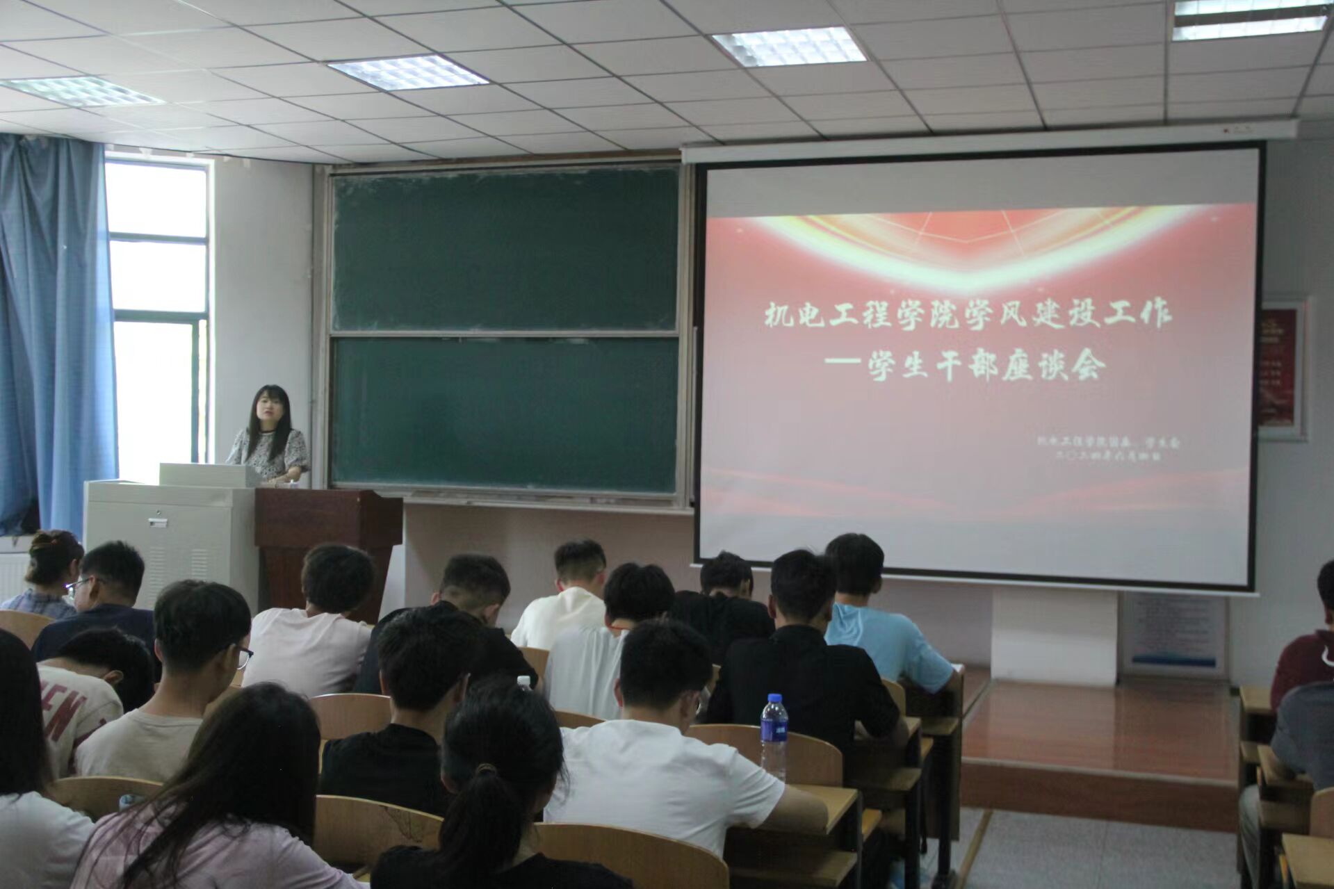 6月5日,机电工程学院在四教C202召开学生干部座谈会。学院党委副书记马青丽、学工办主任,全体辅导员及学院各班班委参加会议。