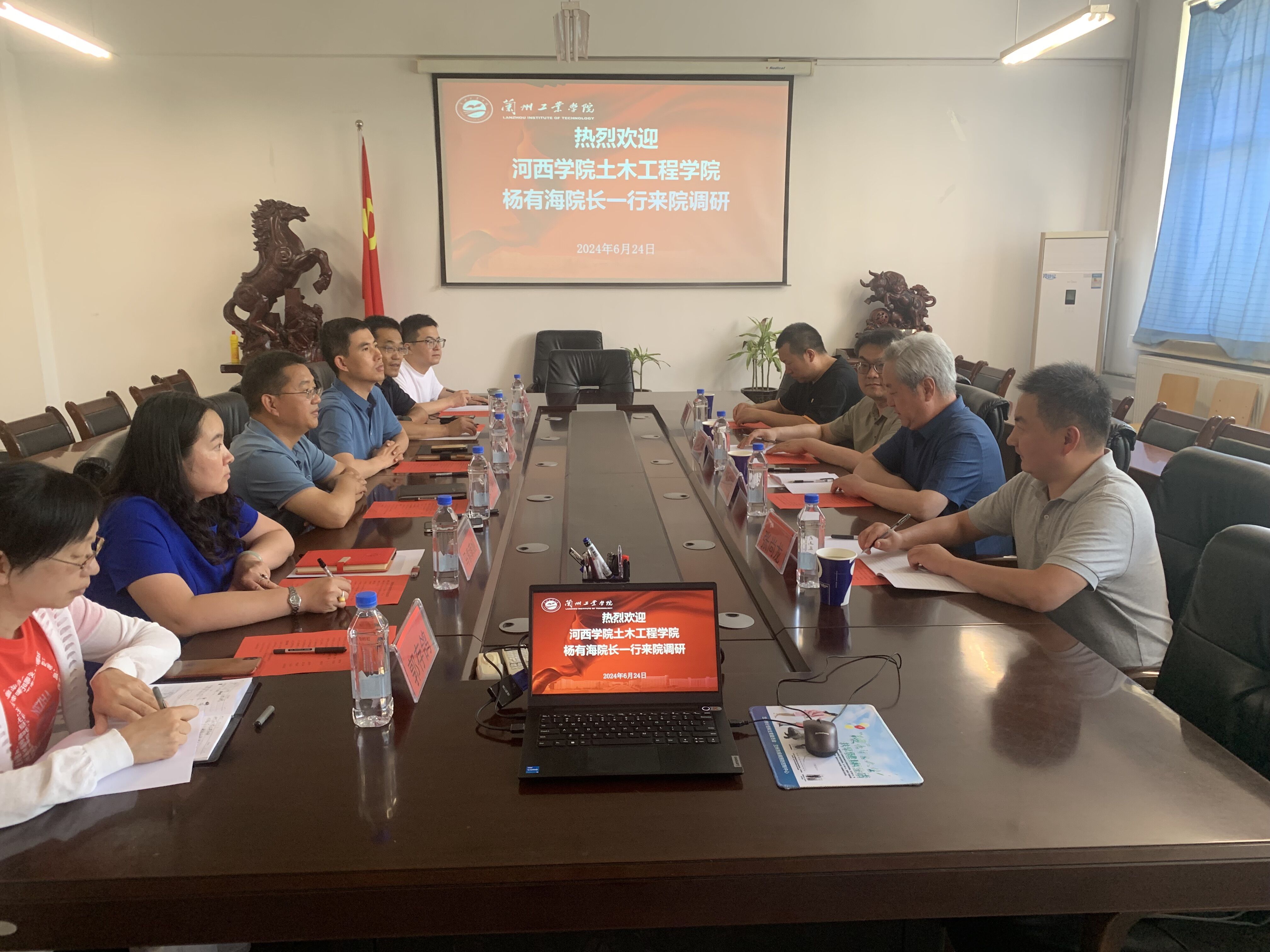 6日24日,河西学院土木工程学院院长杨有海一行来我校土木工程学院调研。学院领导班子成员、骨干教师代表参加座谈会。