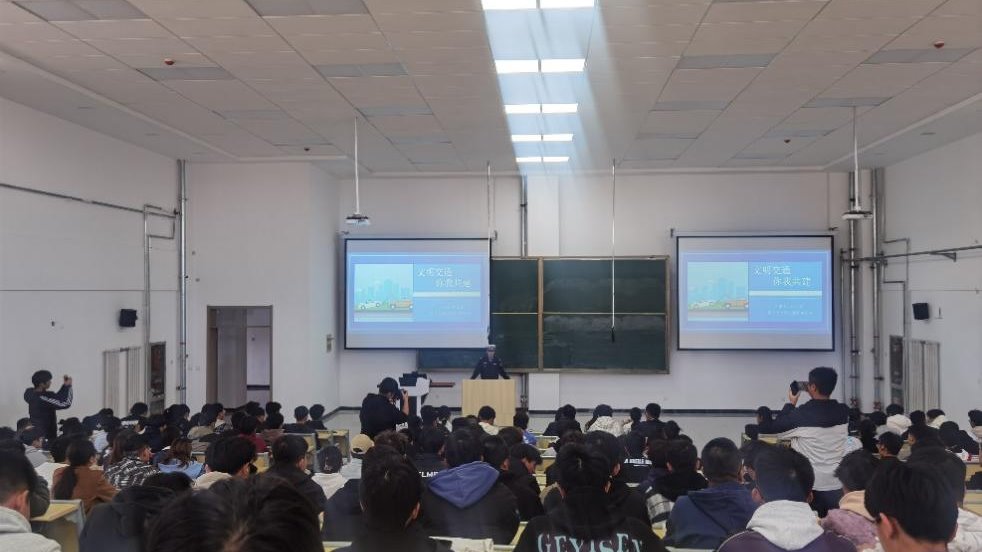 11月4日,土木工程学院开展新生安全教育宣讲会。西岔交警中队警官丁文辉应邀作宣讲。