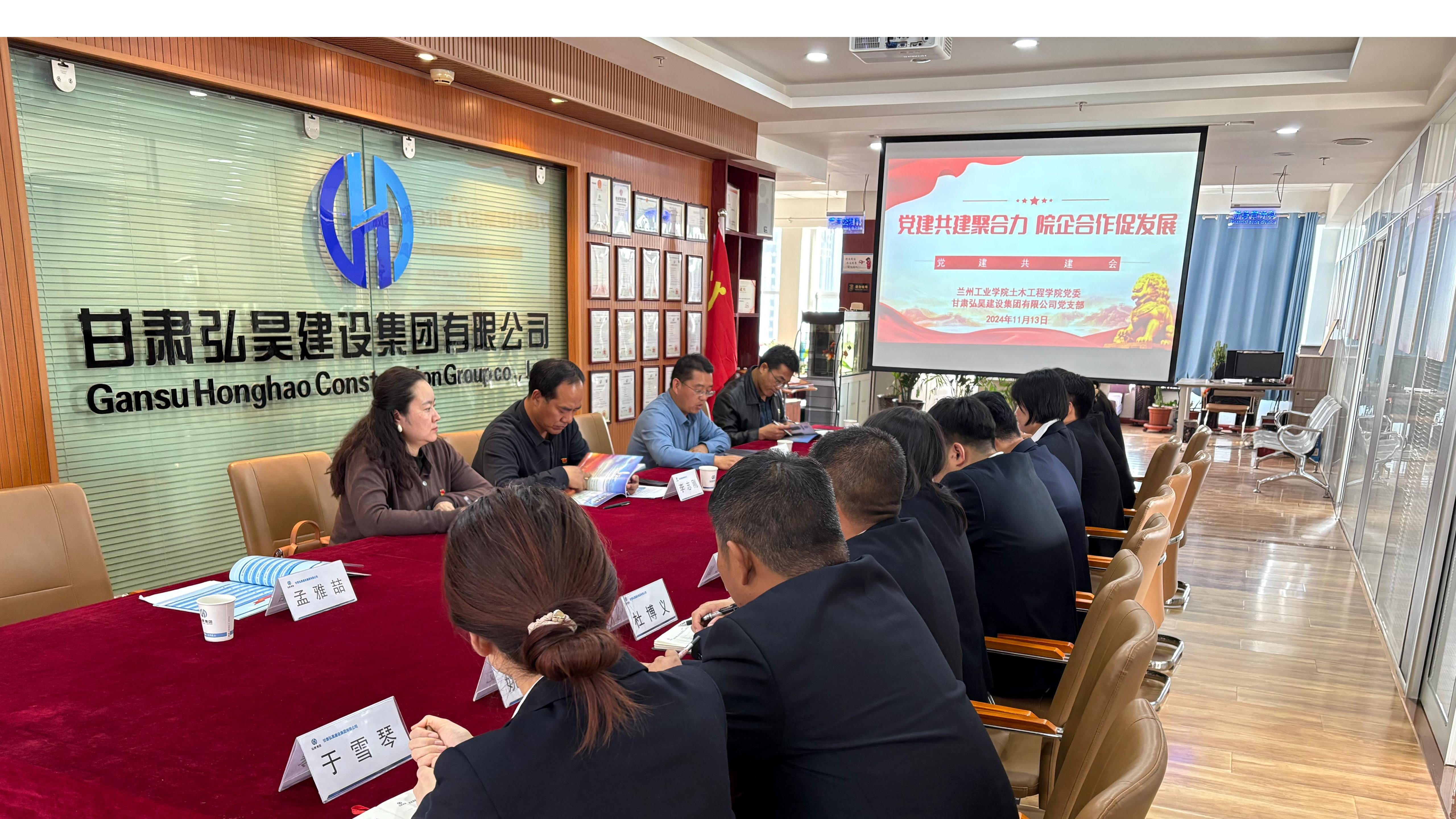 甘肃弘昊建设集团有限公司总经理周杰对企业创办历程、公司业绩、经营规模、企业文化及党建工作经验等方面作了交流分享,并表示将以此次党建共建活动为契机,充分发挥党建引领作用,共谋校企高质量一体化发展,共同打造校企合作新典范,通过开展联合主题党日、党员教育培训等活动,搭建双方党支部互学互促的交流平台。