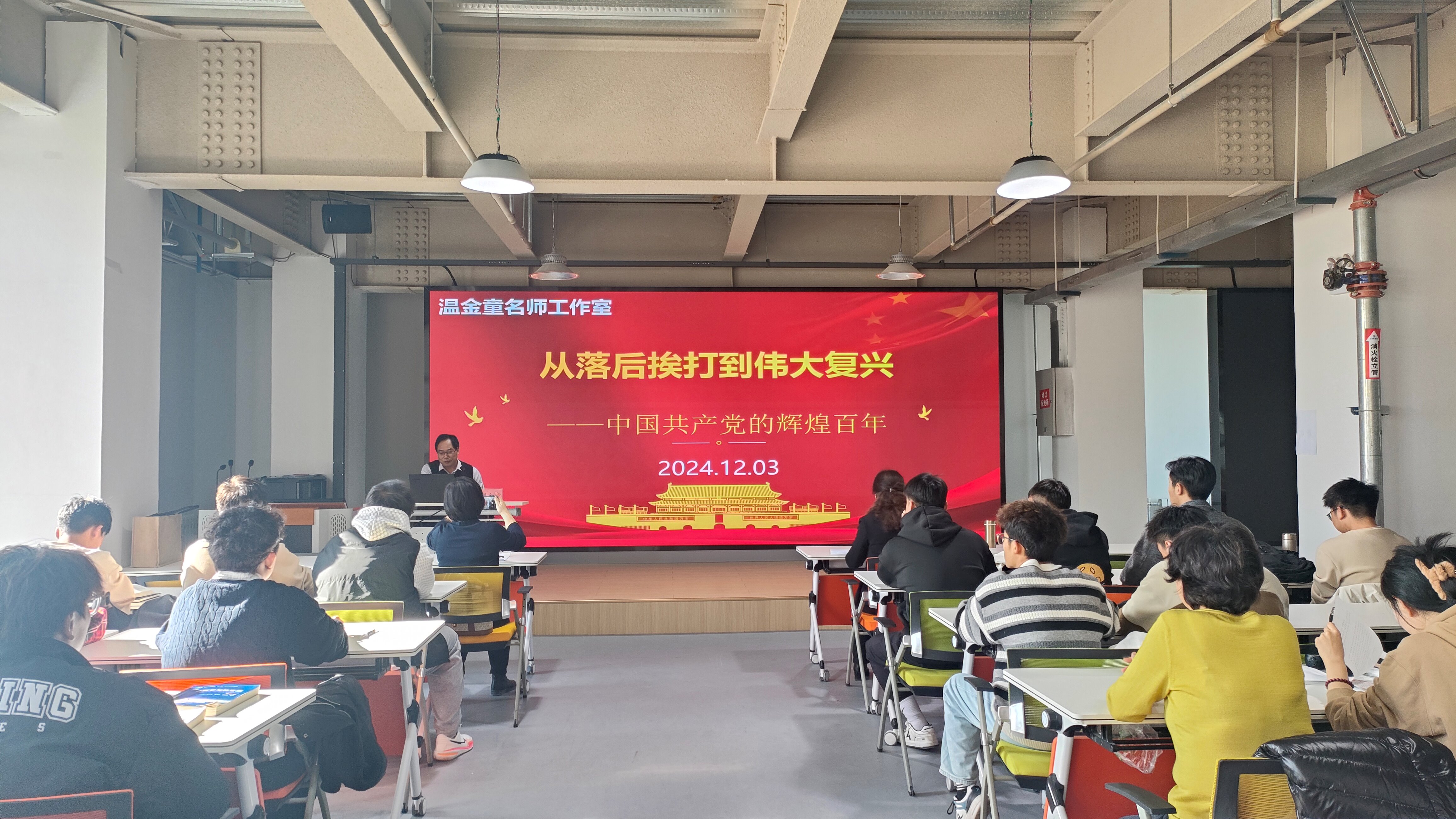 12月3日,西北师范大学博士生导师、陇东学院温金童教授应邀作题为《从落后挨打到伟大复兴——中国共产党的辉煌百年》的专题报告。马克思主义学院副院长韩艳慧主持报告。