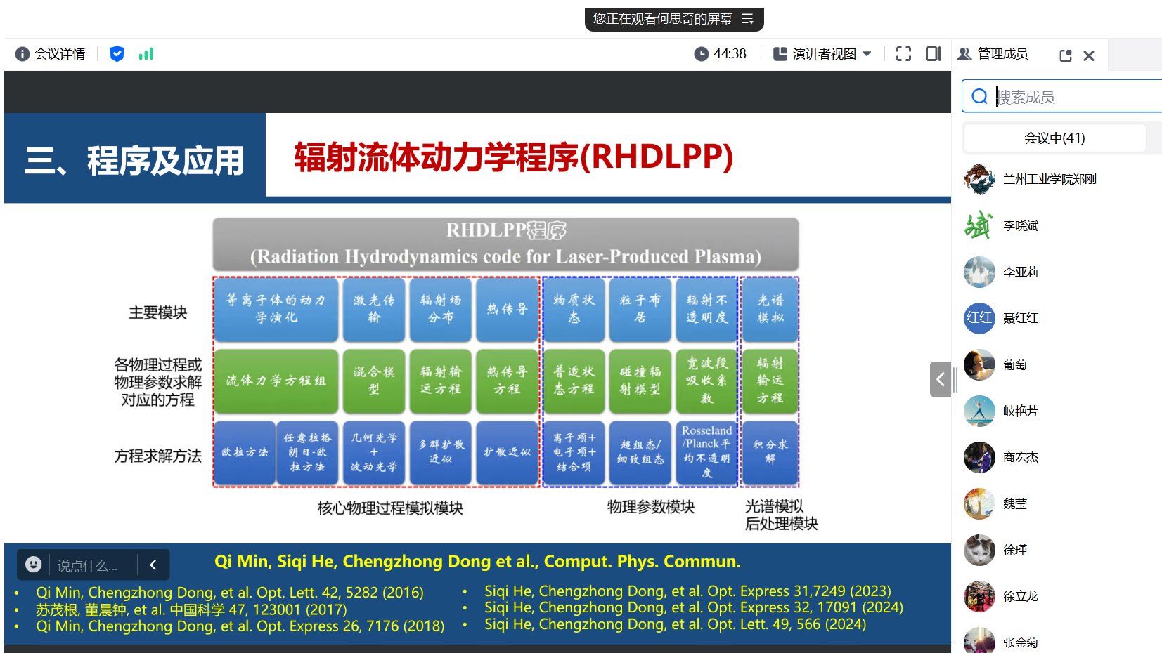 12月10日,学院何思奇博士进行了题为“激光等离子体辐射特性的实验和理论研究”的报告。他分享了其在激光等离子体辐射特性领域的最新研究成果,包括实验方法、理论分析及应用前景,并就其专业方向与参会教师进行了热烈讨论。