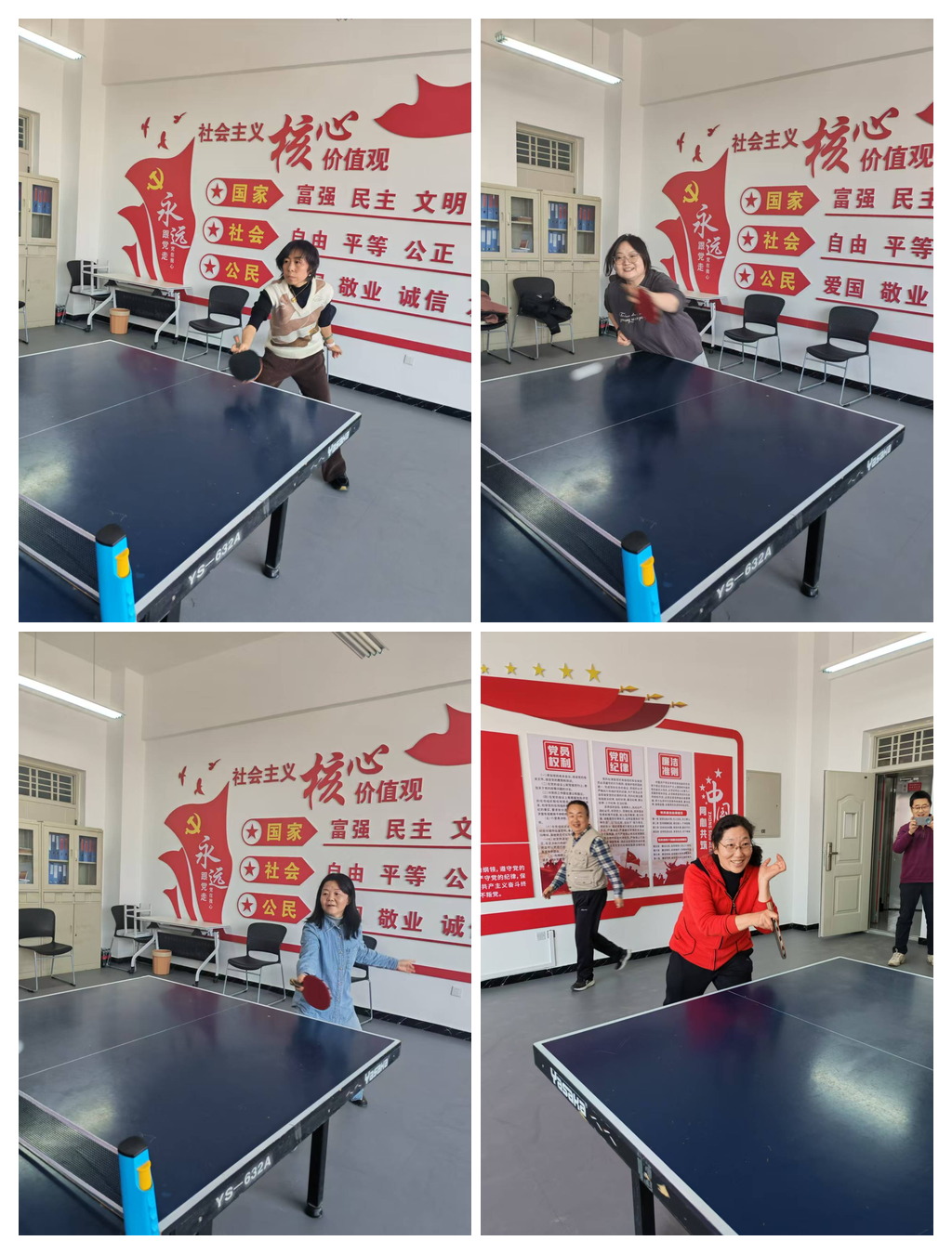 乒乓球比赛是学院传统的教职工体育竞赛项目。本次比赛,学院分工会积极组织、教职工广泛参与。比赛中,对阵双方你来我往、搓推扣挡,充分发挥了技战术水平,场面激烈,欢声笑语不断。