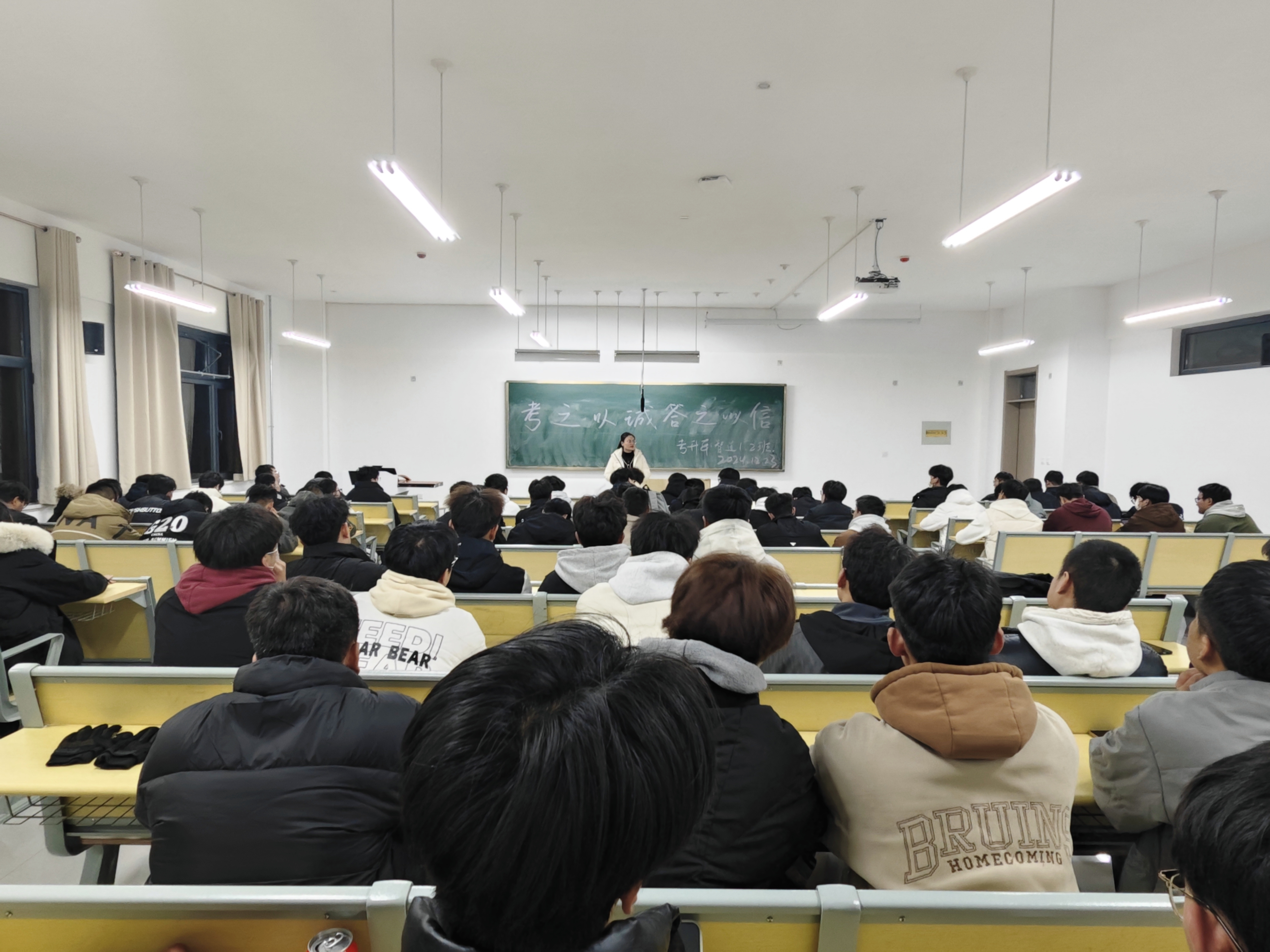为进一步加强学风建设,严肃考风考纪,以考风促学风,培养学生诚信品格,营造诚信考试的良好氛围,12月24号机电工程学院开展了学风建设之诚信考试主题活动,此次活动全院各班级全覆盖。