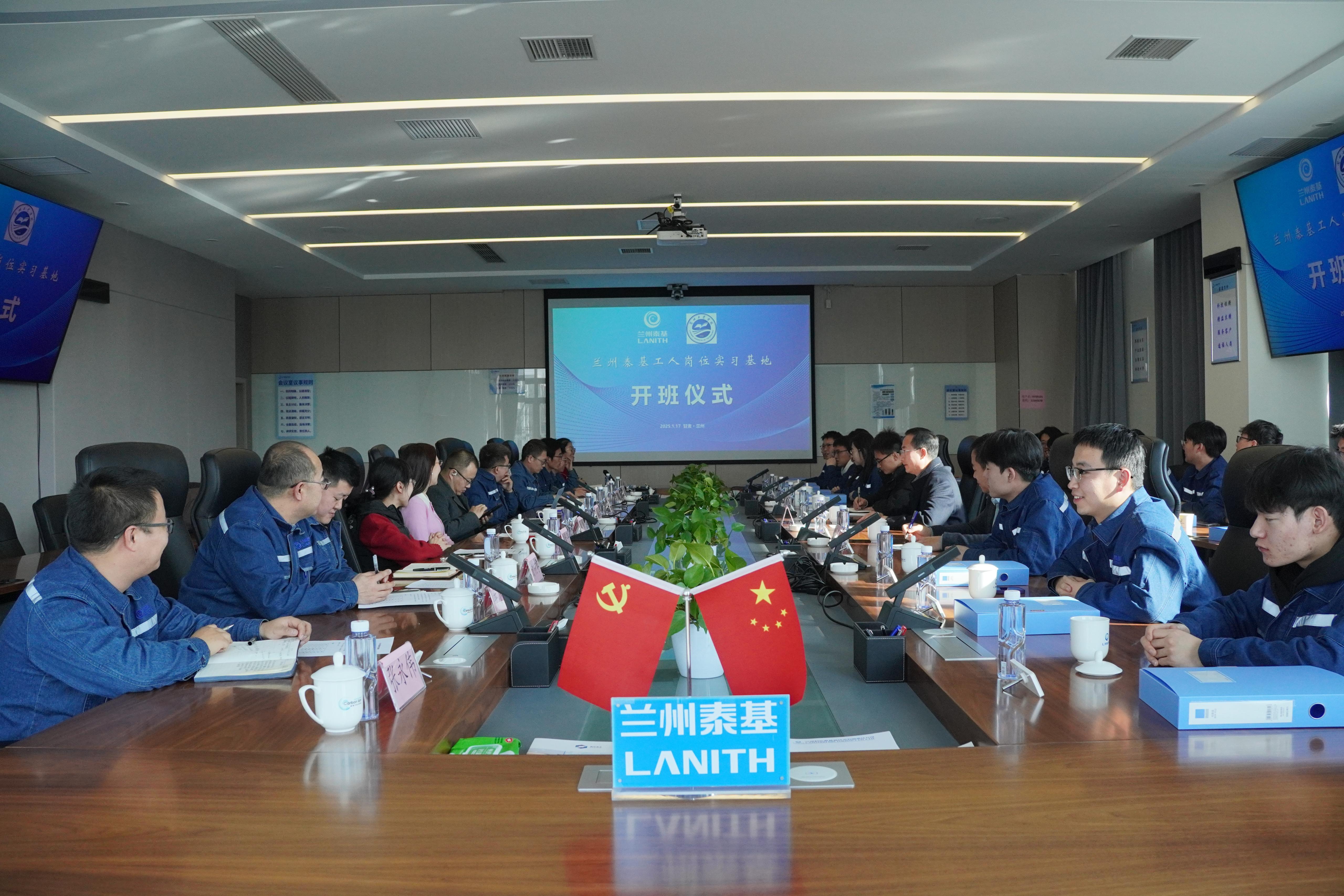 1月17日,机电工程学院赴兰州泰基离子技术有限公司举行毕业生岗位实习开班仪式,学院院长林小军,兰州泰基公司行政副总经理张颖、生产副总经理姚俊杰以及公司相关部门领导,机电工程学院教师代表、全体实习生及企业指导教师参加会议,开班仪式由张颖主持。