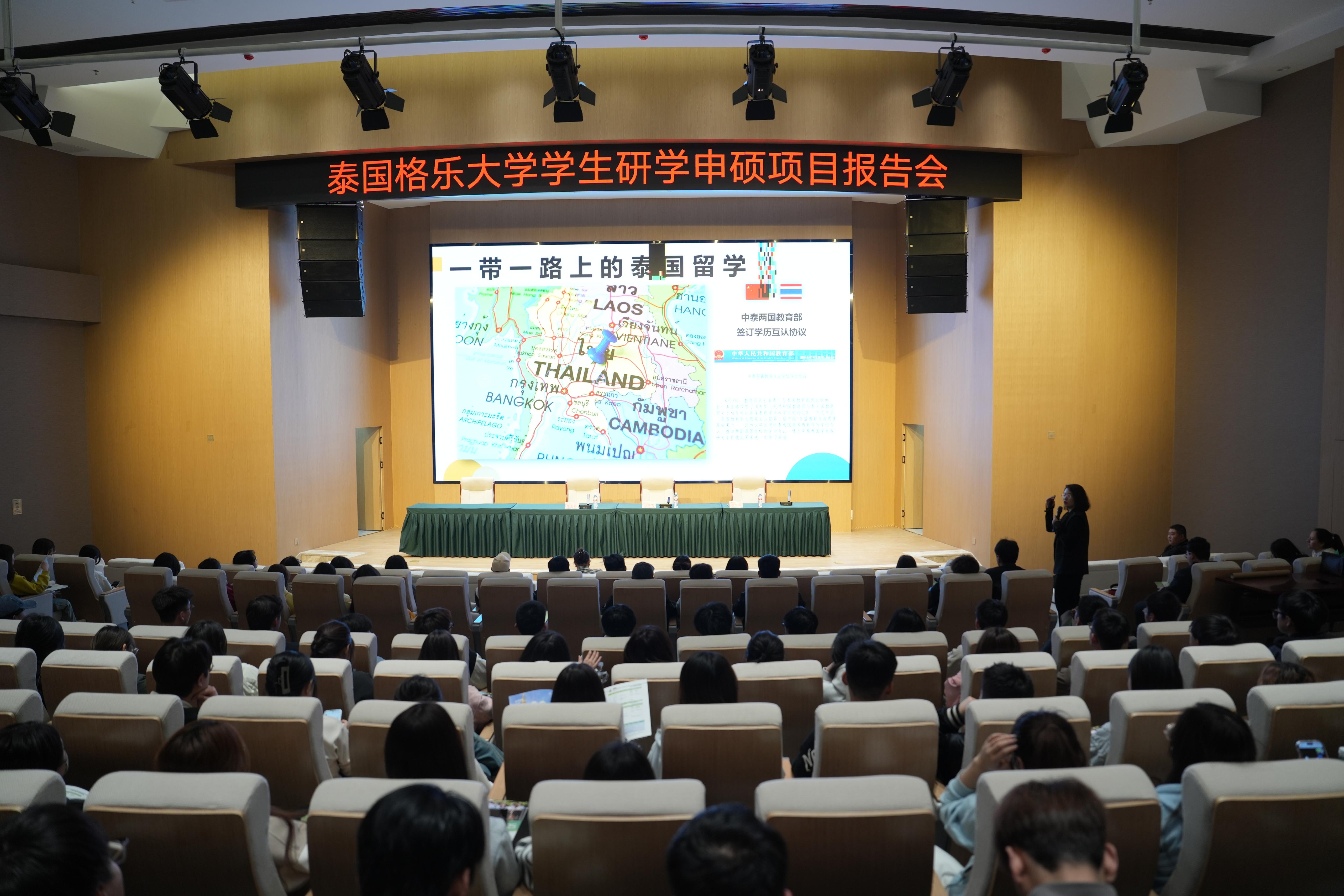 会上,张佳隆全面介绍了泰国格乐大学短期交换生项目、寒暑期夏令营项目、硕士及博士升学项目等,详细解读了学分互认、留学申请流程、课程设置、收费标准、学位认证以及校内学术资源等,向同学们展示了泰国的美食美景,泰国格乐大学独特的校园风貌、先进的教学设施、人性化的管理制度和丰富多彩的社团活动。在互动交流环节,就学生关心的问题逐一进行了解答。