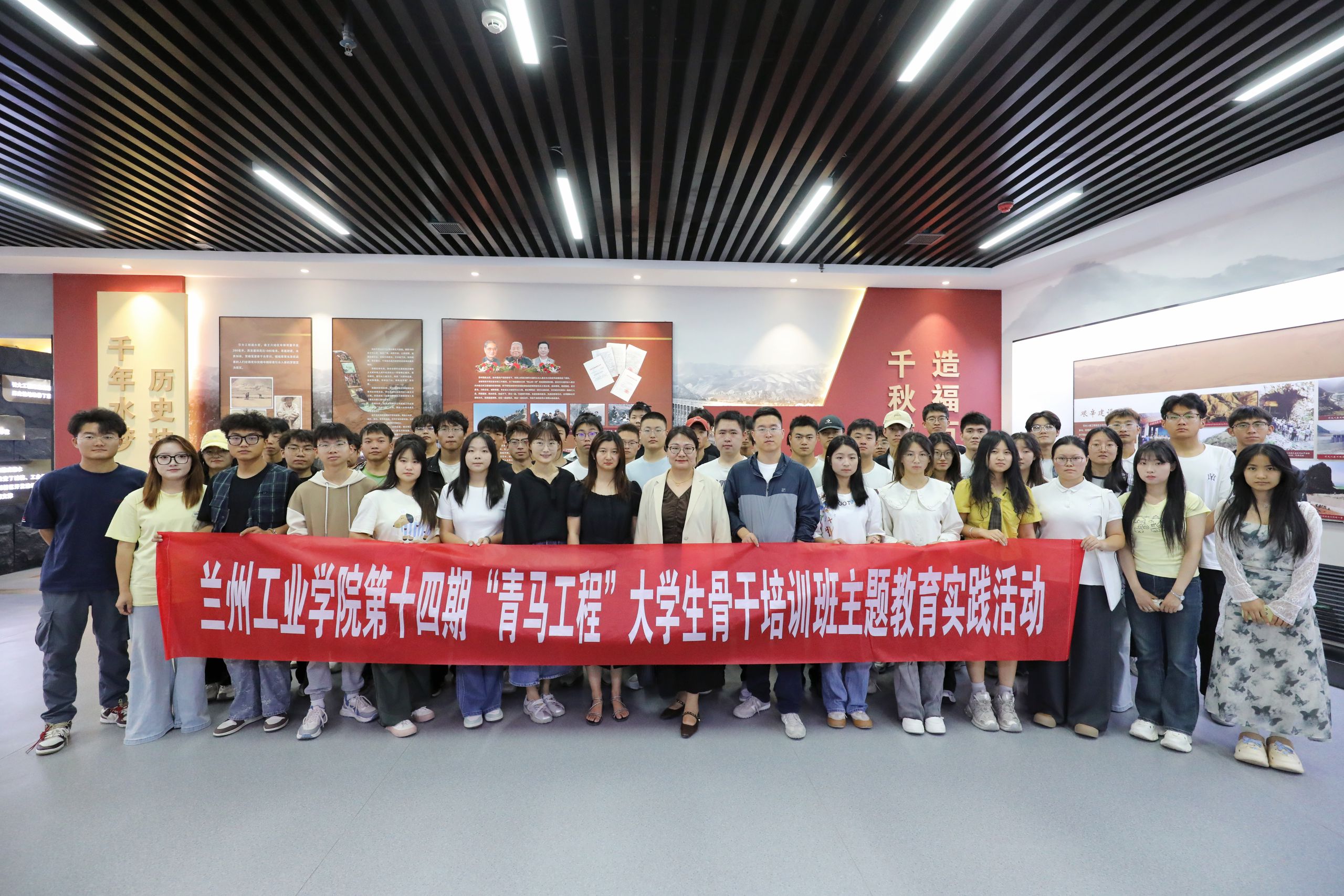 培训班采用专题讲座报告、思政团课、现场实践教学等多种形式,引导青马学员筑牢信仰根基,增强使命担当。7月2日晚,马克思主义学院青年教师、校团委挂职副书记王志斌为学校第十四期青马班学员作题为《赓续精神血脉,奋进赶考征程:准确领会伟大建党精神的深刻内涵》的专题报告。学员们深刻认识到将伟大建党精神内化于心、外化于行的重要性;7月2日-4日,校团委组织全体学员开展系列学习活动,集中观看全国青联十四届全委会、中华全国学生联合会第二十八次代表大会开幕式直播,学习习近平总书记贺信精神,收看“强国建设复兴有我”——《恰同学少年》省级示范性思政团课,围绕“青春为中国式现代化挺膺担当”热议。学员们一致认为,将从革命先辈青春足迹中汲取力量,在“强科技、强工业”行动中彰显工院青年担当;7月6日-8日,校团委组织青马学员先后赴甘肃省简牍博物馆、“引大入秦”工程展览馆开展主题实践教学。在甘肃省简牍博物馆,学员们深刻领略了简牍的历史价值与文化魅力,增强了守护中华文化根脉、坚定文化自信的使命感。在“引大入秦”工程展览馆,学员们通过现场聆听讲解、观看图片和实物展览、观看工程纪录片和沙盘模型,详细了解引大入秦工程这一“西北都江堰”的宏伟壮举与感天动地的奋斗史。参与实践学习的师生们纷纷表示,要学好专业知识,做好本职工作,为中国式现代化甘肃篇章贡献力量。