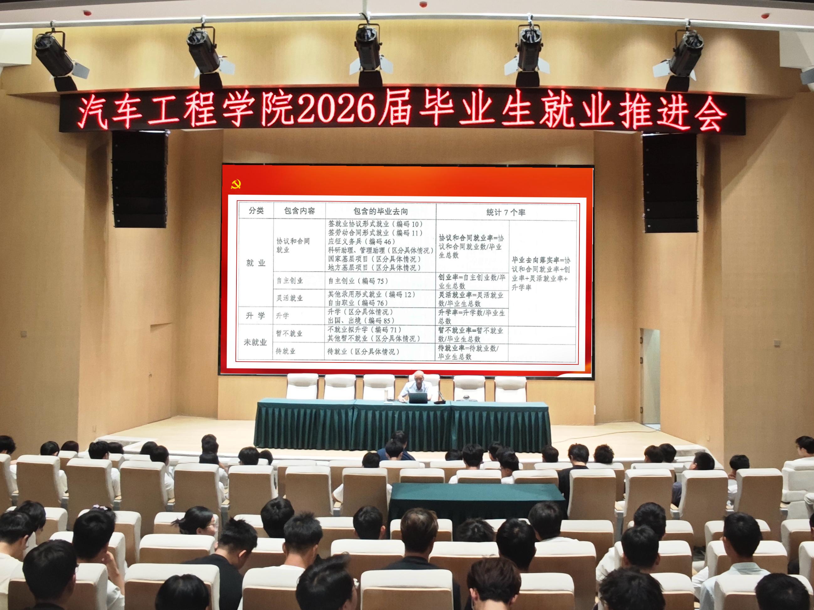 为扎实推进2026届毕业生就业工作,帮助毕业生把握就业形势、了解就业政策、明确求职方向,9月9日下午,汽车工程学院在图书馆报告厅召开2026届毕业生就业动员会。