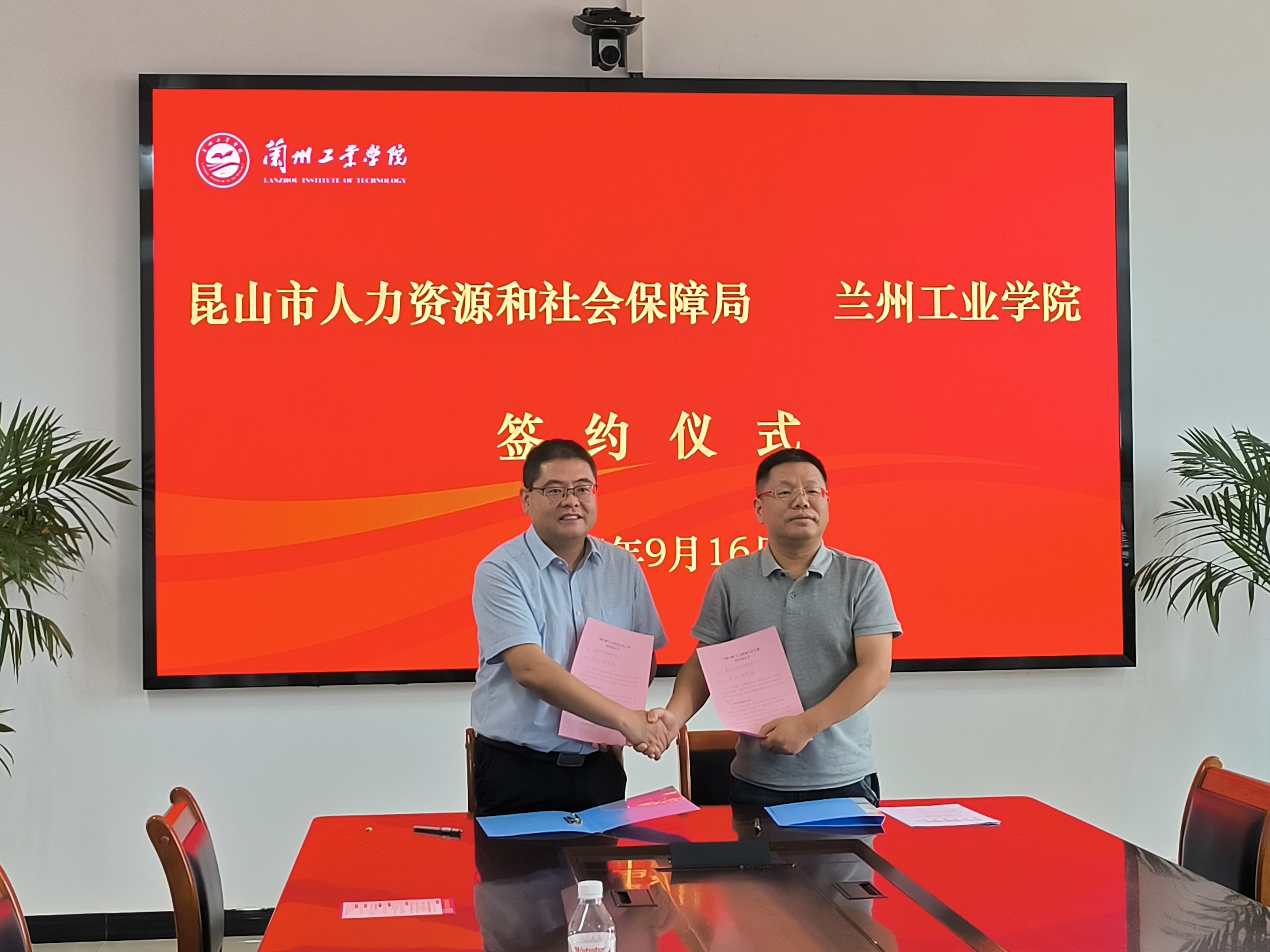 座谈会上,姚国华与王斌共同签署了《“20+20”人力资源合作计划院校协议书》。