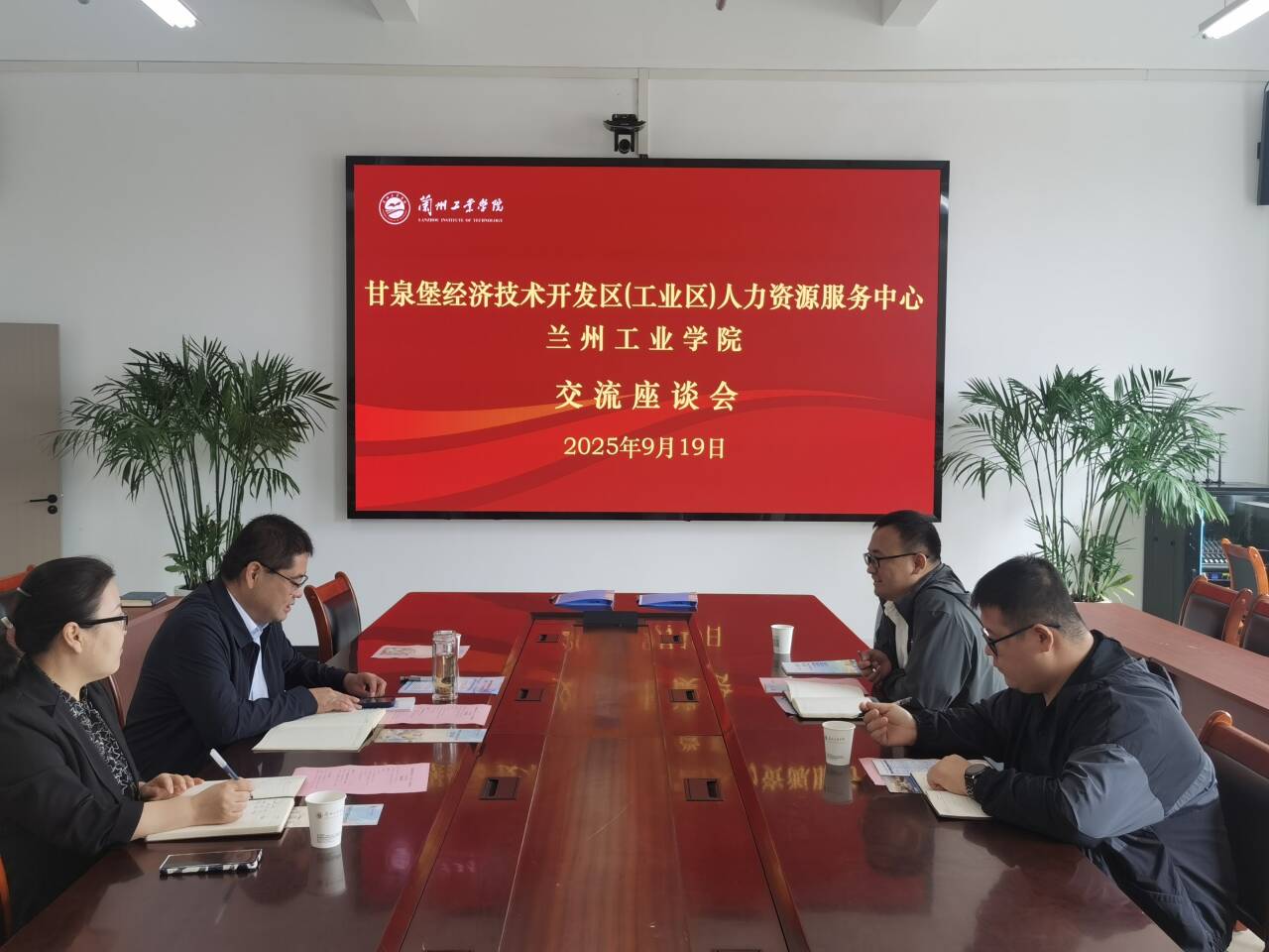 王斌对王建华一行的到来表示热烈欢迎,详细介绍了学校办学历程、师资力量、学科优势以及人才培养模式,并重点就我校专业设置同甘泉堡经济技术开发区产业企业匹配度及2026届毕业生情况作了重点推介。