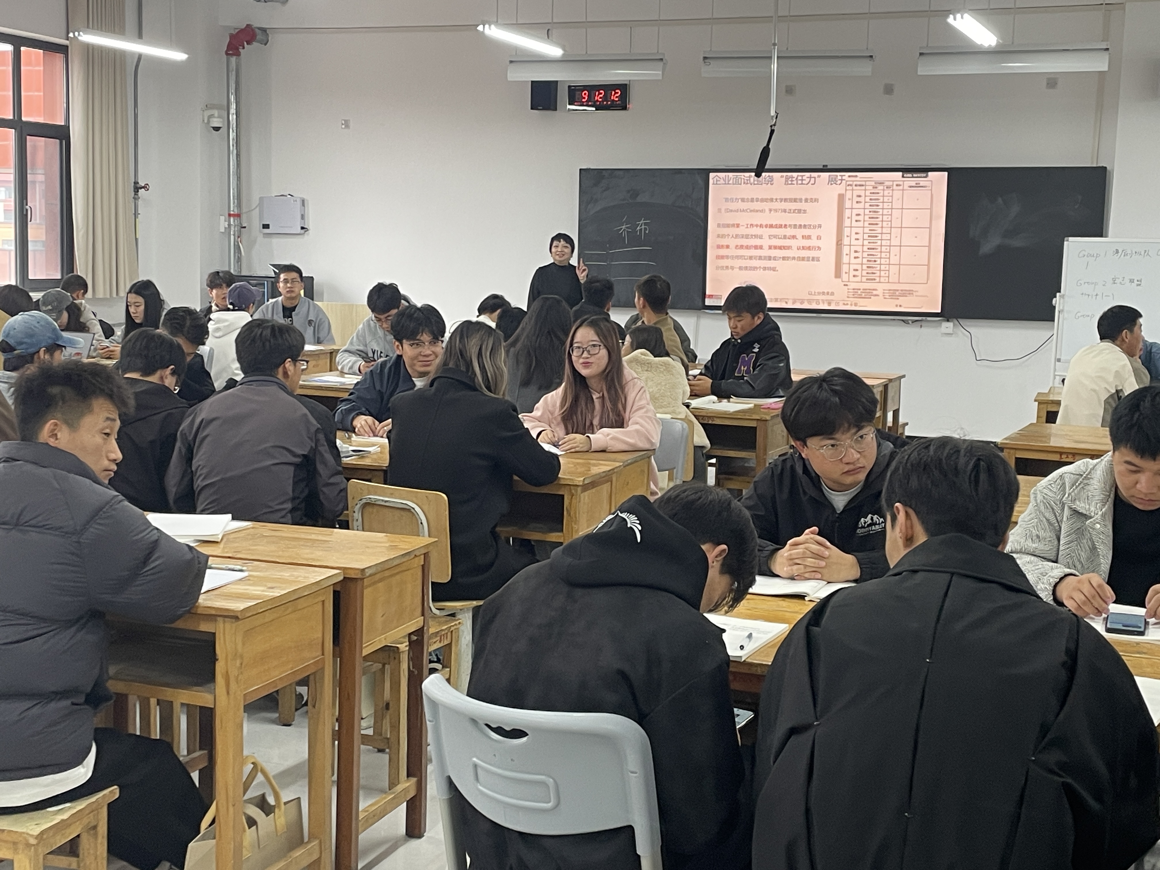 活动紧密结合当前就业形势与学生实际需求,围绕“求职分析与优势识别”“就业信息搜集与管理”“AI赋能求职路”“个体与群体面试技巧”等12大主题展开,涵盖职业定位、简历撰写、面试能力、心态调节、创新创业及企业研学等全流程就业指导。培训采用线下小组实践式教学,通过互动讨论、情景模拟、小组任务等形式增强学习体验。