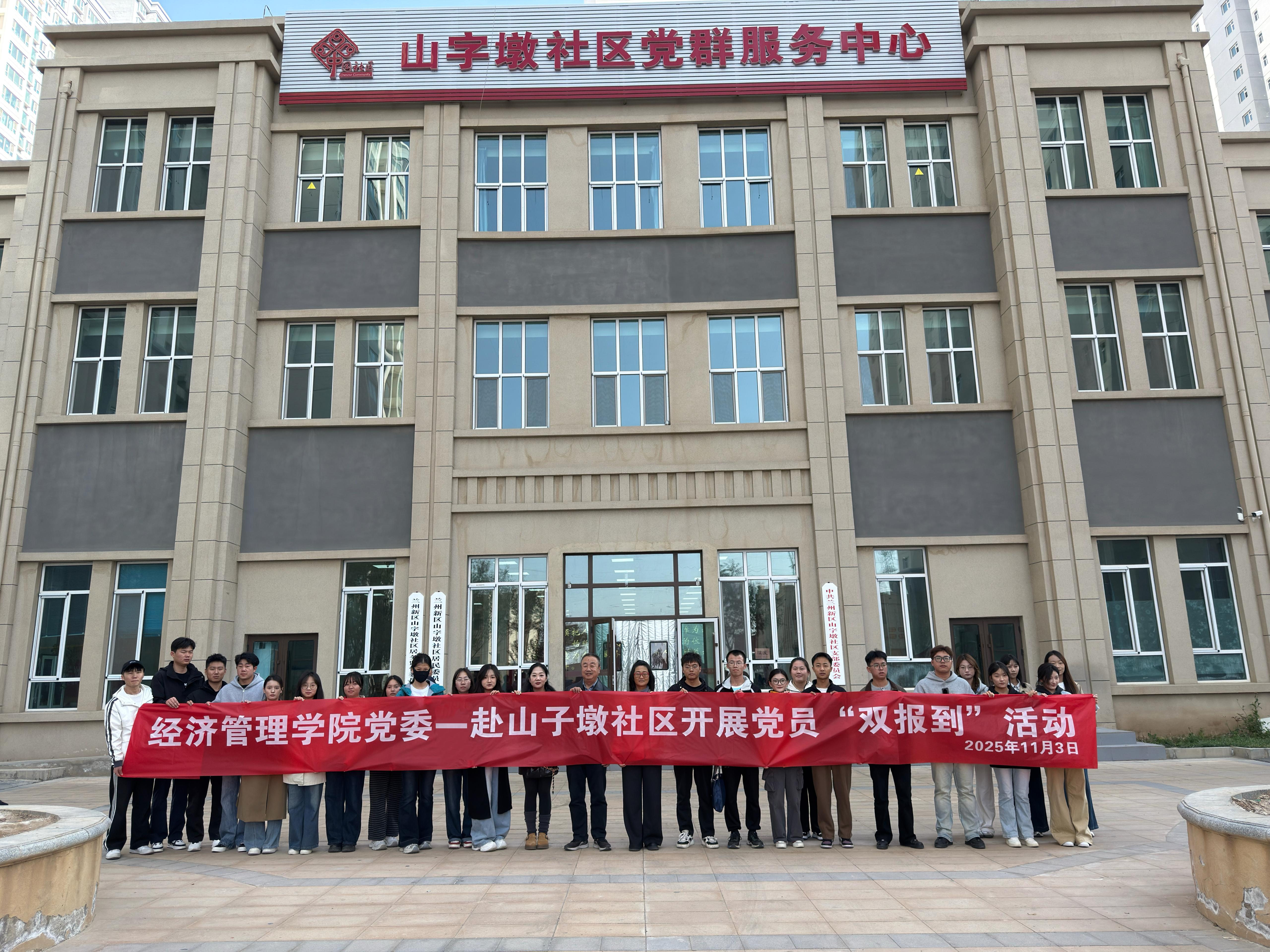 11月3日,经济管理学院党委书记杨亚萍、党委副书记何志勇组织学生支部部分党员,赴兰州新区职教园区山字墩小区开展社区“双报到”活动。