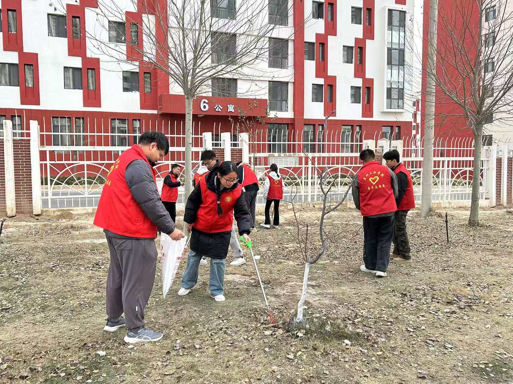 活动现场,学院党委充分发挥党建引领作用,构建“党员带头、团员紧跟、骨干示范”的工作格局。师生党员冲锋在前,带领团学骨干分工协作、默契配合:有的手持扫帚、铁铲清理社区公共区域的生活垃圾、落叶杂草,有的细致擦拭宣传栏、健身器材等公共设施,有的重点整治墙角、绿化带等卫生死角,全力清除环境“顽疾”……志愿者们不怕脏、不怕累,以饱满的热情和务实的作风,让社区及周边环境焕然一新,赢得社区工作人员和居民的一致好评。