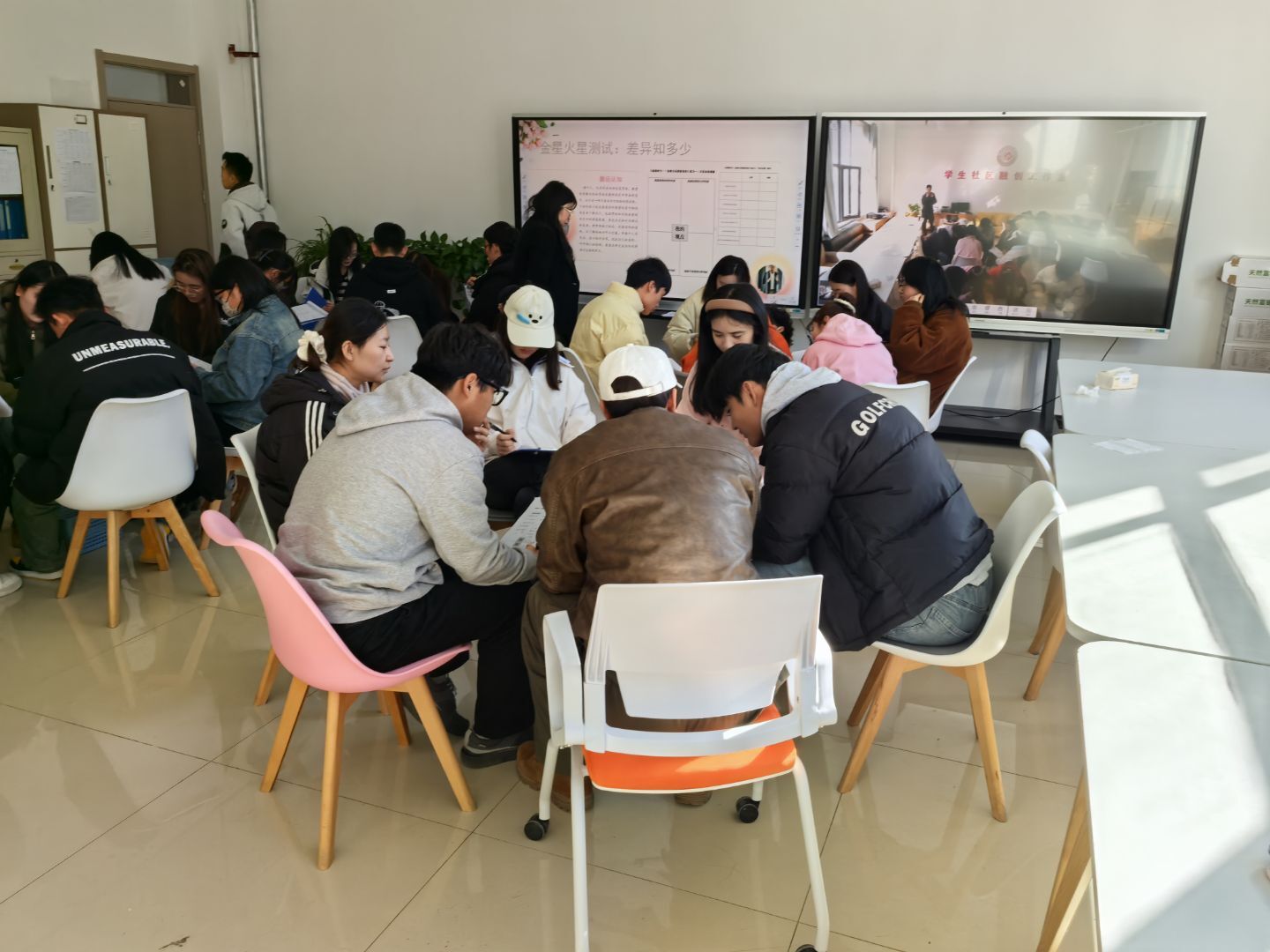 活动采用双场地联动模式,精选课余时段分多场次推进,聚焦学生成长核心诉求,围绕“情绪管理类”“自我探索类”“人际协作类”“生涯规划类”等主题,共开展10场活动,全方位满足学生心理成长需求。活动中,西北师范大学心理学院博士、国家二级心理咨询师强秀云,我校大学生心理健康教育课程讲师为活动专业度提供了坚实支撑。