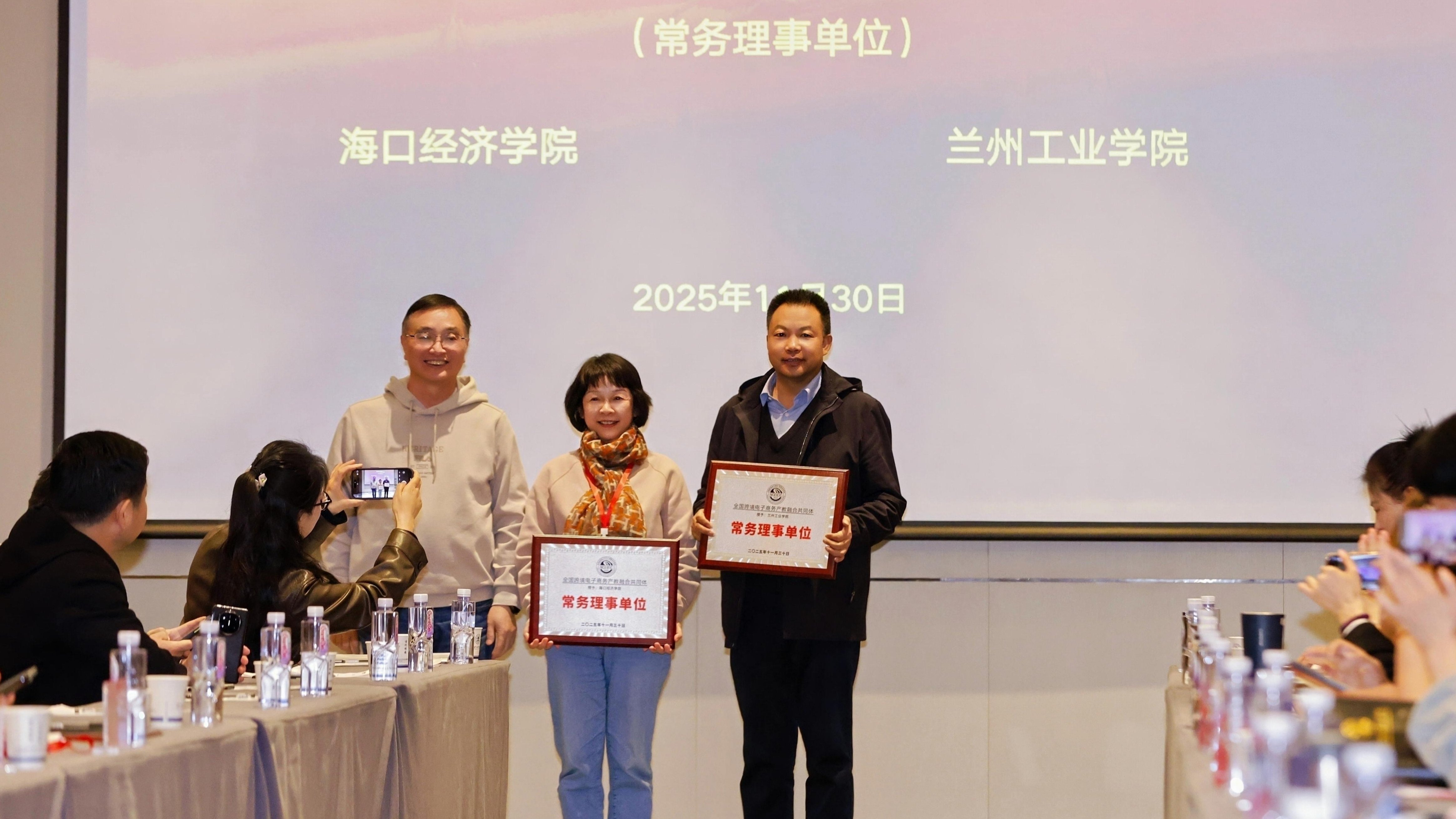 12月1日,全国电子商务专业高质量发展研讨会暨全国跨境电子商务产教融合共同体工作会议在兰州博文科技学院新区校区举办。我校当选为“全国跨境电子商务产教融合共同体常务副理事长单位”,经济管理学院院长戴德锋参加授牌仪式。