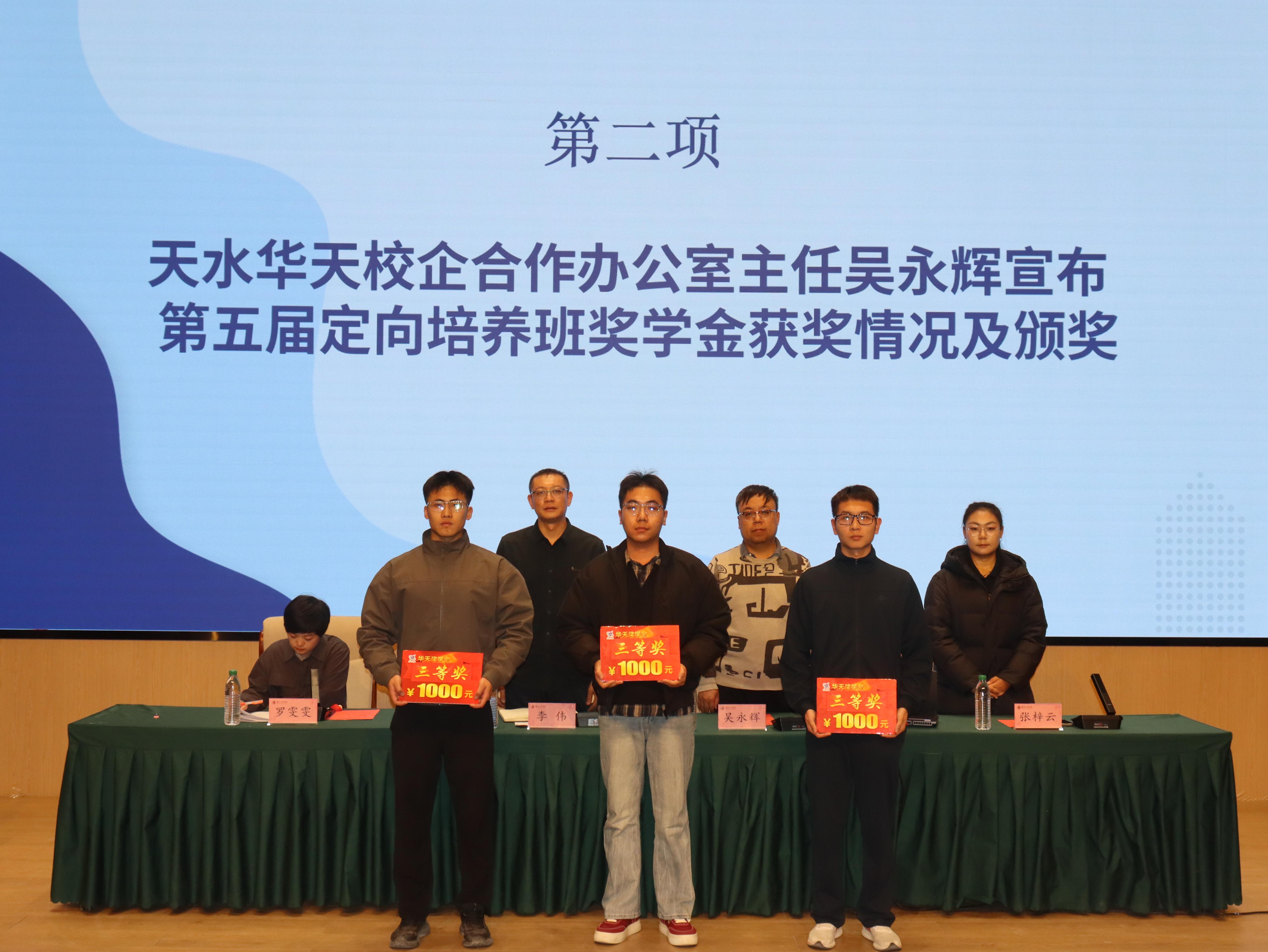 12月18日,电子信息工程学院与天水华天科技股份有限公司在兰州新区校区图书馆报告厅举行校企合作定向班第五届奖学金颁奖仪式暨第六届宣讲仪式。天水华天科技股份有限公司校企合作办公室主任吴永辉、校企合作办公室专员张梓云,电子信息工程学院副院长李伟参加宣讲仪式。