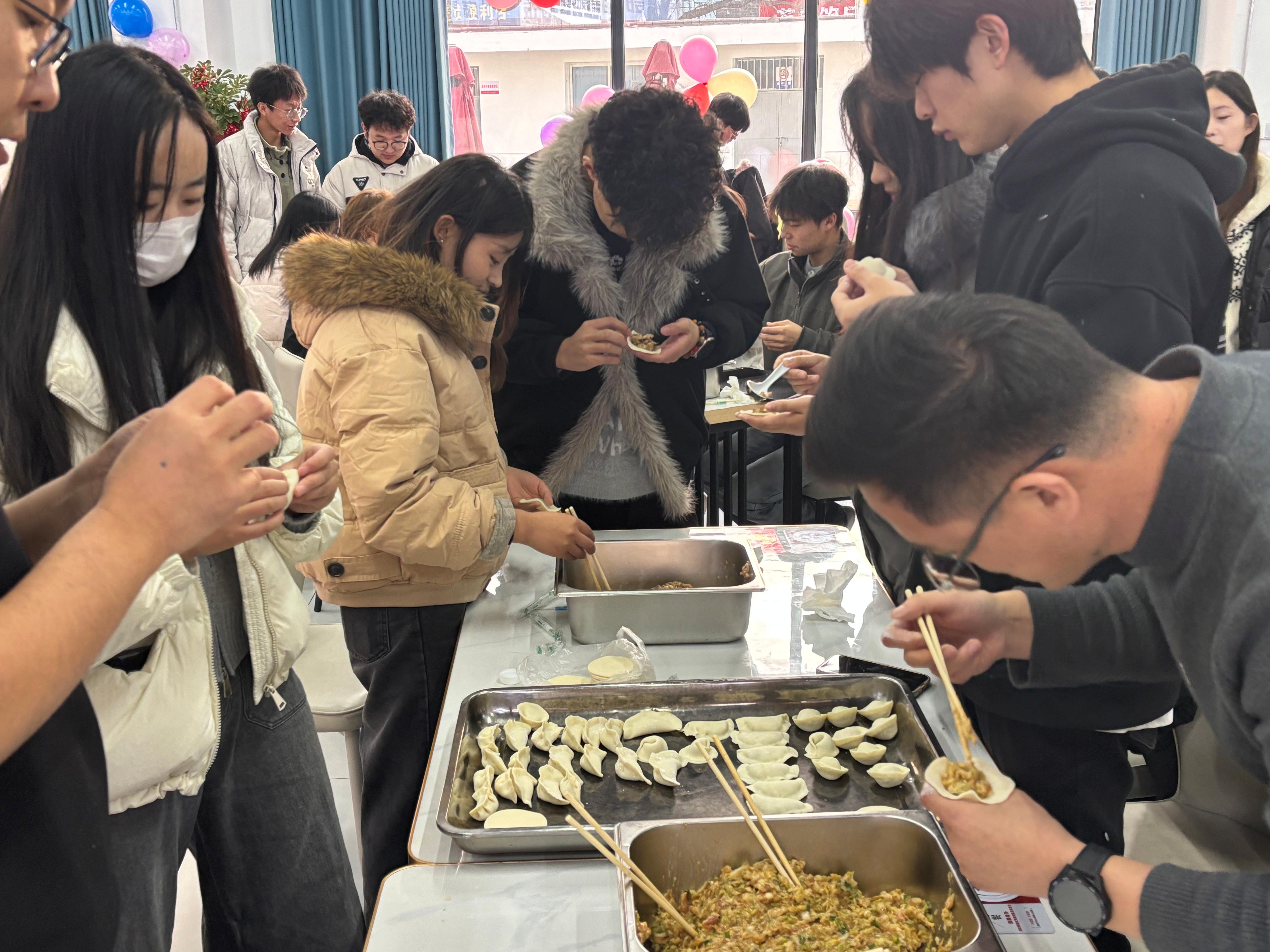 在冬至寒意渐浓、元旦新章将启的美好时刻,大家欢聚一堂,共同迎接这两个承载着温情与希望的节日。龚成功代表学院向奋勇拼搏、力学笃行的莘莘学子,表达了最诚挚的节日祝福。活动现场暖意融融,师生们参与包饺子、游戏互动、猜歌等趣味环节,在吃饺子环节中还观看了精彩绝伦的节目表演。