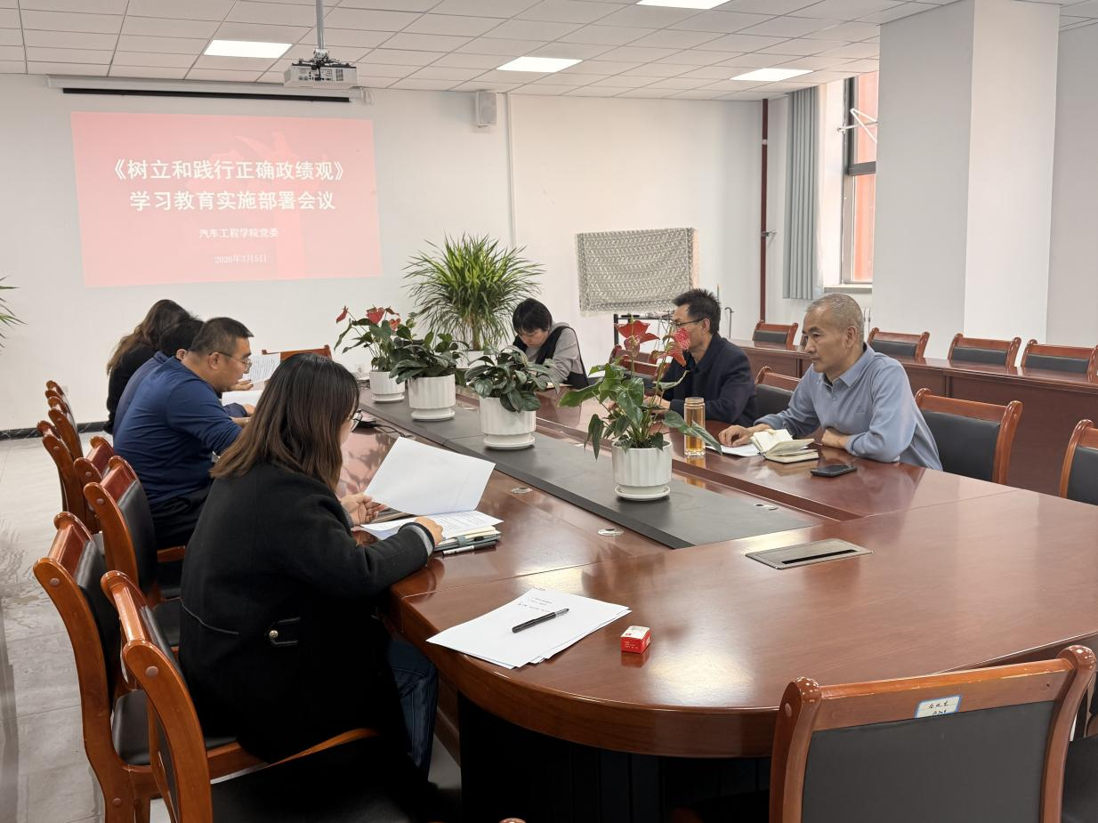 3月5日,汽车工程学院召开树立和践行正确政绩观学习教育实施部署会议。学院领导班子成员、各党支部书记参加会议,会议由学院党委书记杨永萍主持。