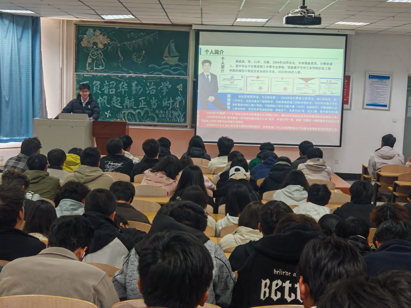活动中,机设23-2班杨昌武、测控23-1班李瑞倩立足自身学习成长经历,紧扣机电专业人才培养目标,从学习方法、成长规划和实习实践等多个方面,用真实案例、务实经验展开分享,传递勤学善思、实干笃行的理念,为学院学子带来了兼具实用性与指导性的内容输出。与会同学纷纷表示,要勇于挑战自我、敢于突破局限,积极投身专业实践,将课堂理论知识与工程实际应用紧密结合,在实践中锤炼过硬本领、增长综合素质,努力成长为可堪大用、能担重任的机电专业人才。