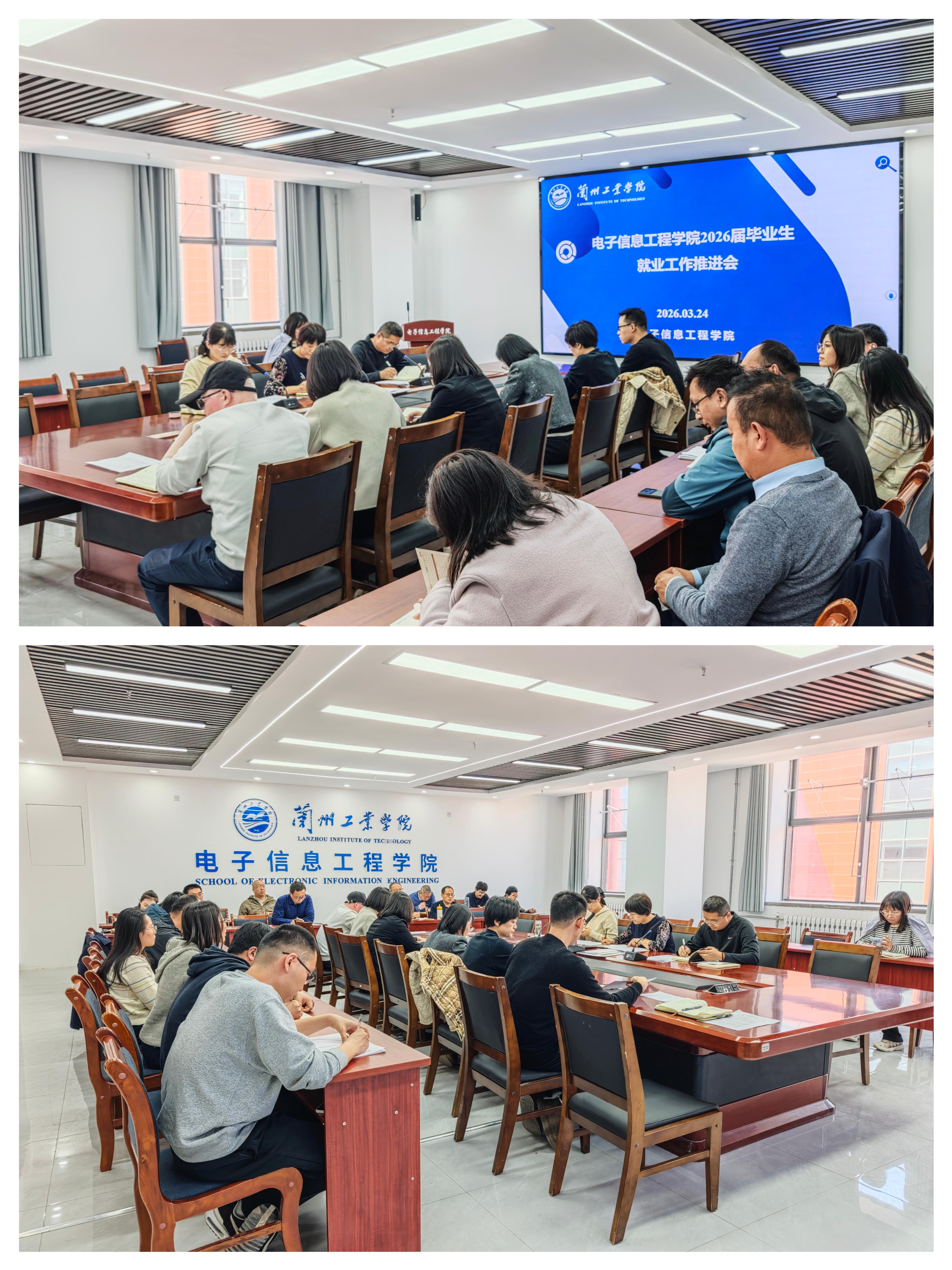 为扎实推进2026届毕业生就业工作,压紧压实就业工作责任,精准赋能毕业生高质量充分就业,3月24日下午,电子信息工程学院在北理工楼 A408 会议室召开2026届毕业生就业工作推进会。学院党委书记张焕霞,院长何辉,党委副书记、副院长彭琳茹,各系主任、班主任、就业帮扶老师及全体辅导员参会。会议由张焕霞主持。