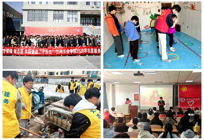 全校各学院结合专业特色与青年特点,扎实开展系列实践活动。校学生会、青年志愿者协会走进兰州星宝儿童康复中心,开展爱心陪伴、康复辅助、环境清洁等志愿服务,用温暖与耐心关爱“星星的孩子”,在奉献中增强社会责任感。机电工程学院深入学生宿舍开展安全与住宿隐患排查,建立问题台账,及时对接维修整改,切实为学生解决实际困难,营造安全舒适的住宿环境。电气工程学院开展主题团日活动,重温雷锋事迹、交流践行路径;组织60余名党团学生代表赴七里河区龚北路社区、山字墩社区开展禁毒宣传与环境卫生整治,清理楼道与绿化带垃圾、规范车辆停放,以实际行动服务基层群众。土木工程学院、外国语学院以主题团课、事迹宣讲、观影分享等形式,引导青年学子深刻领会雷锋精神的时代内涵。电子信息工程学院开展校园清洁、图书整理、实验室保洁等志愿服务,同步举办“学雷锋光盘不负时光”打卡活动与主题团日活动,倡导勤俭节约、文明用餐,从点滴小事中践行雷锋精神。材料工程学院各团支部通过观看纪录片、诵读雷锋日记、分享身边好人好事等形式,让奉献精神入脑入心。汽车工程学院组织学子走进黑石镇中心敬老院,开展环境美化、文艺陪伴、敬老关爱等志愿服务,传承孝老爱亲传统美德。经济管理学院组织志愿者开展校园环境整治行动,以劳动实践美化校园,展现青年良好风貌。艺术设计学院以线上作品展、社区助老服务、支教助学等形式,用艺术传递正能量,为社区老人提供智能手机使用、生活帮扶等便民服务。计算机与人工智能学院结合主题教育开展寝室文明建设与安全宣讲,引导青年养成良好习惯、守护校园安全。