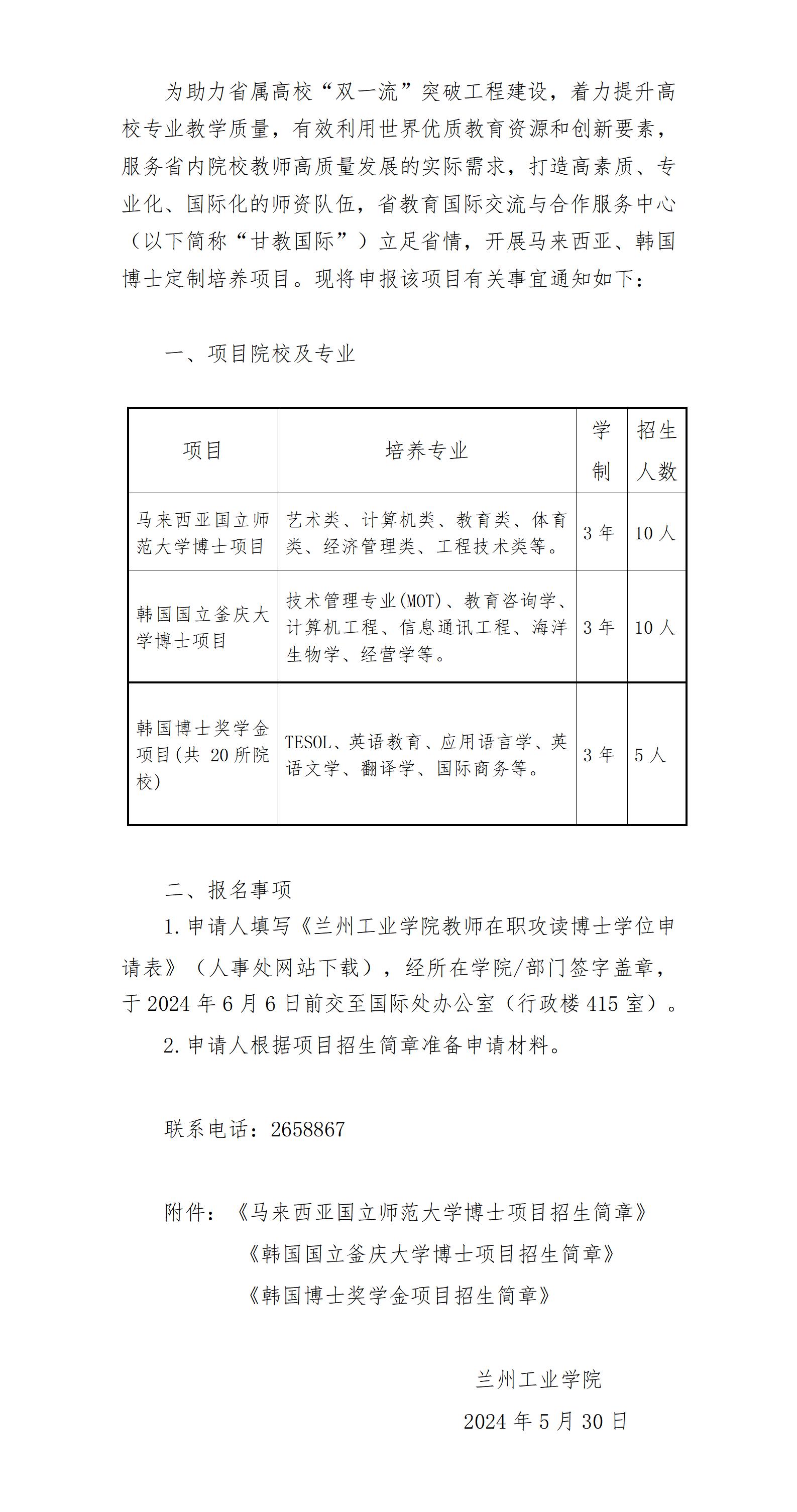 关于组织申报2024年马来西亚、韩国博士定制培养项目的通知