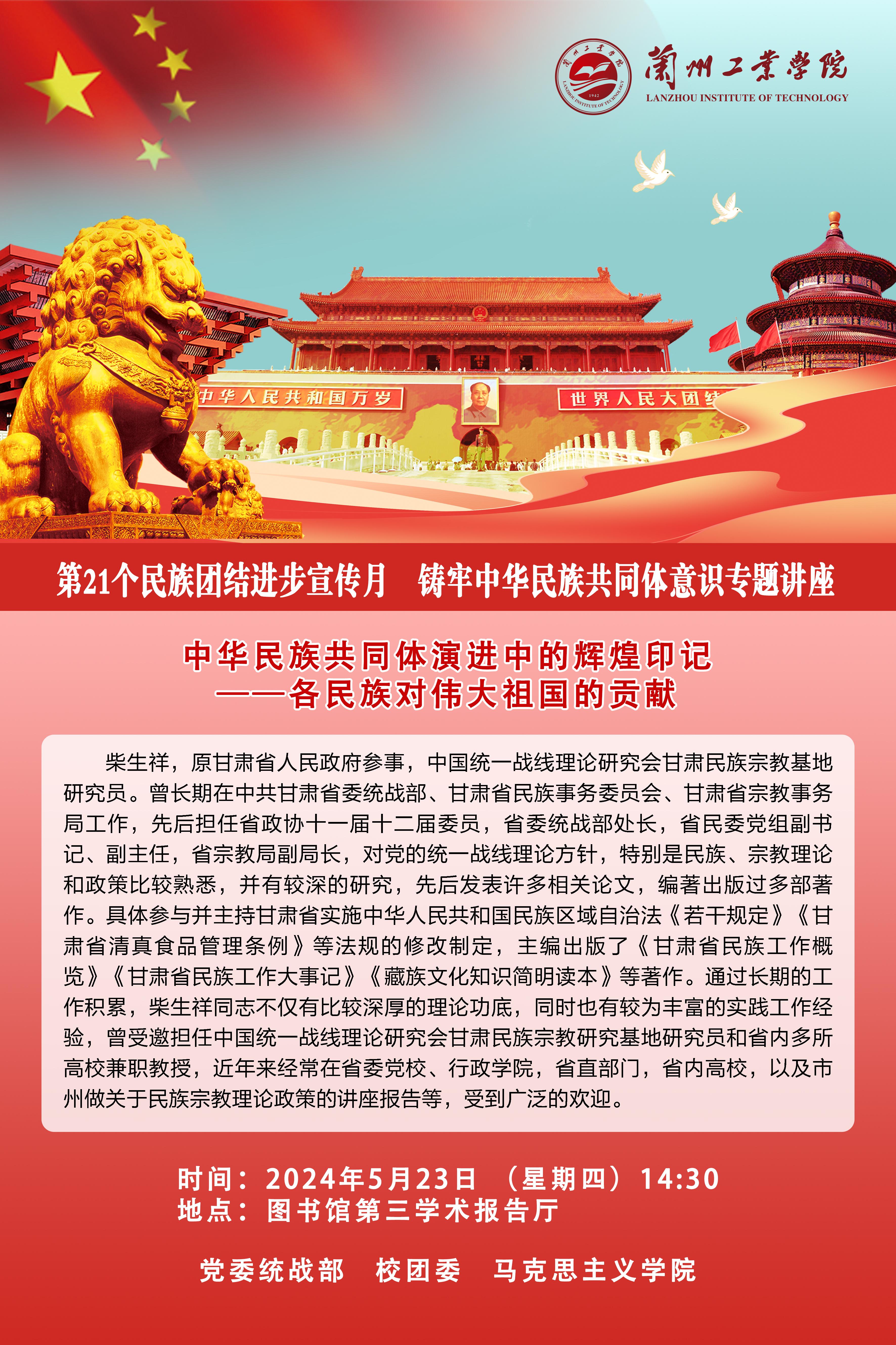 报告题目:中华民族共同体演进中的辉煌印记——各民族对伟大祖国的贡献
