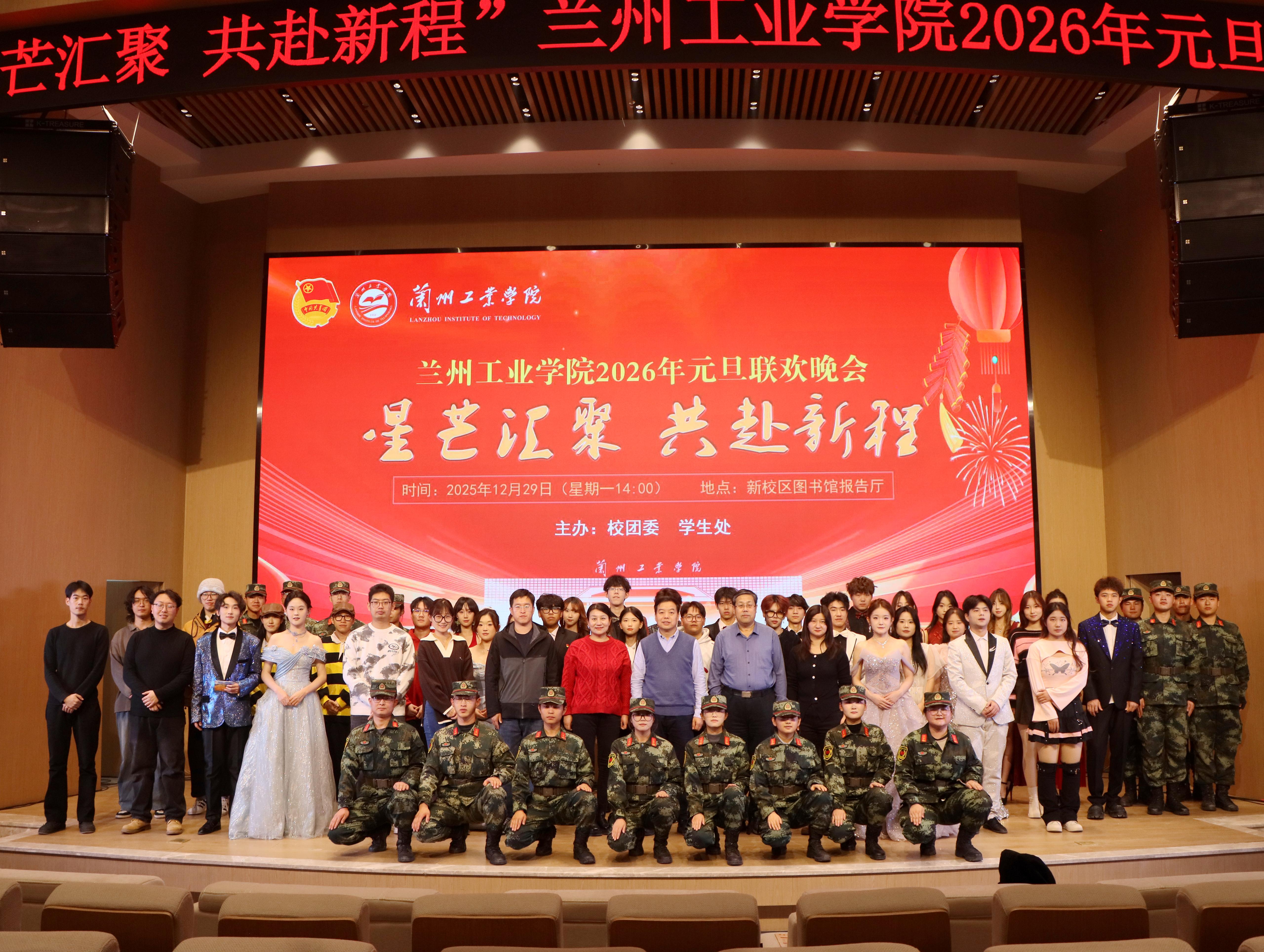 12月29日,学校在兰州新区校区、七里河校区图书馆报告厅分别举办“星芒汇聚 共赴新程”2026年元旦晚会。党委委员、副校长王佰成出席晚会。